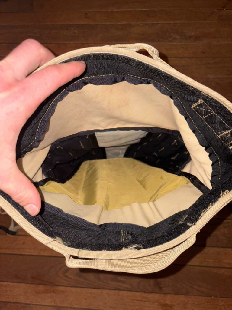 The top closure is build like a roll-top with stiffening but is actually just hook and loop, with a side access smaller zip pocket on the front and lots of PALS space of course.