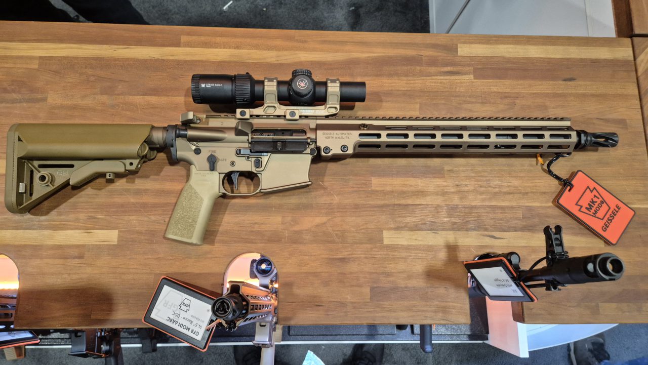 My current bb build project is a from-scratch Geissele Super Duty MOD1 AEG, 16″ in 556.. well 556 markings anyway. So of course I had to do some on-site, original source research while here in Vegas.